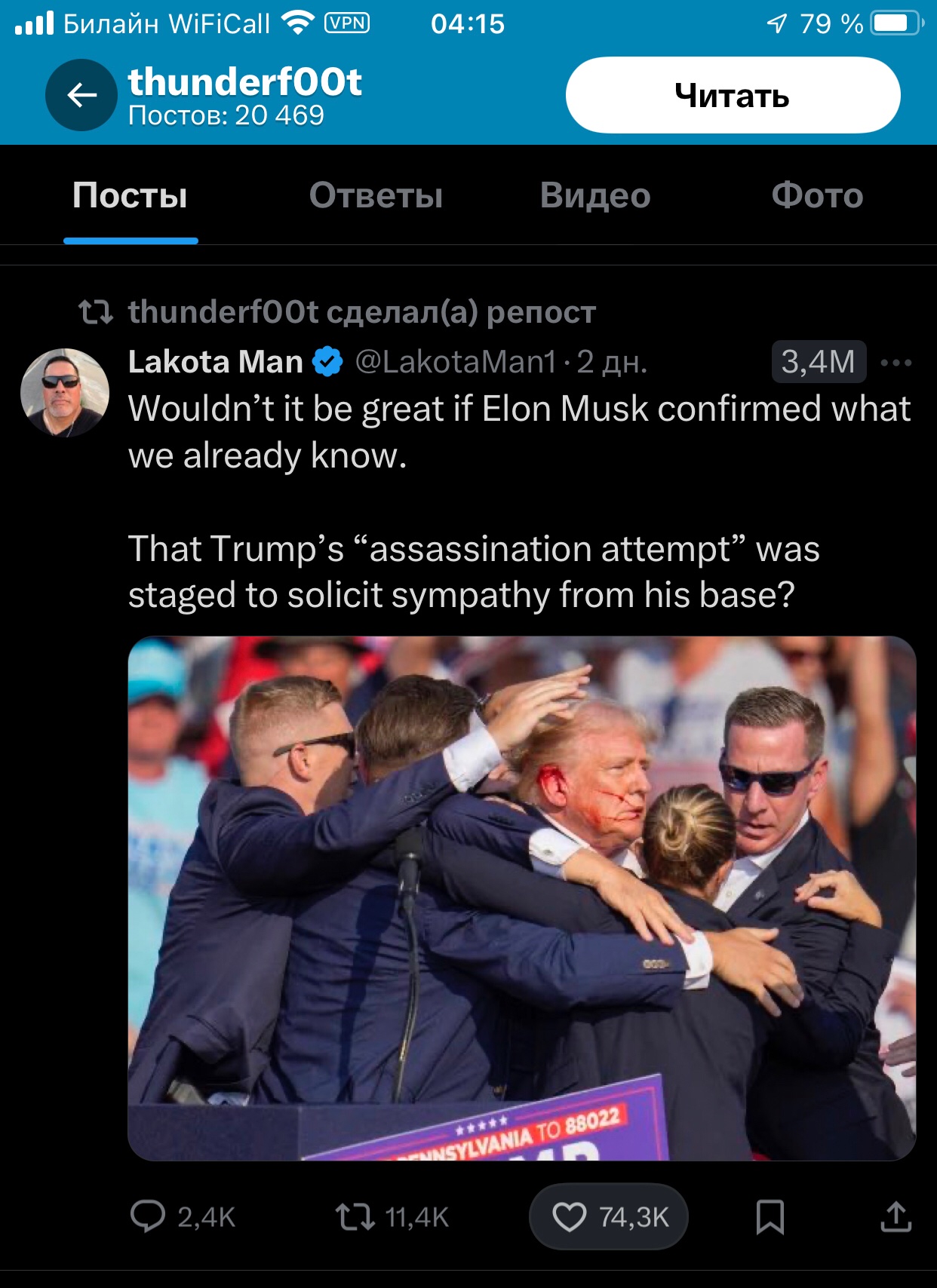 >>809296 Ну, кстати, его смерть очень легко сейчас подстроить, как несчастный случай. Надеюсь он доверяет своей охране и там нет бывших ФБРовцев или ещё кого связанного с элиткой)