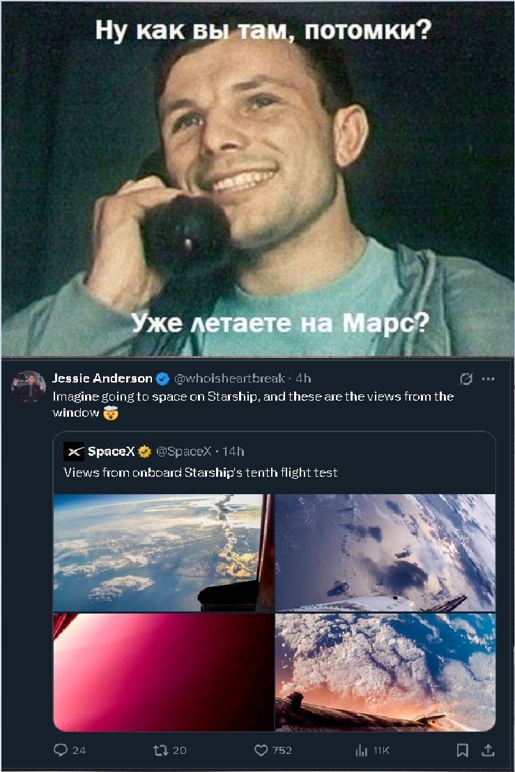 Ну вот китайские частники теперь построят свой Старшип и улетят на Марс - поку Маск и Трамп будут продолжать публично вылизывать говно из задницы тиранов