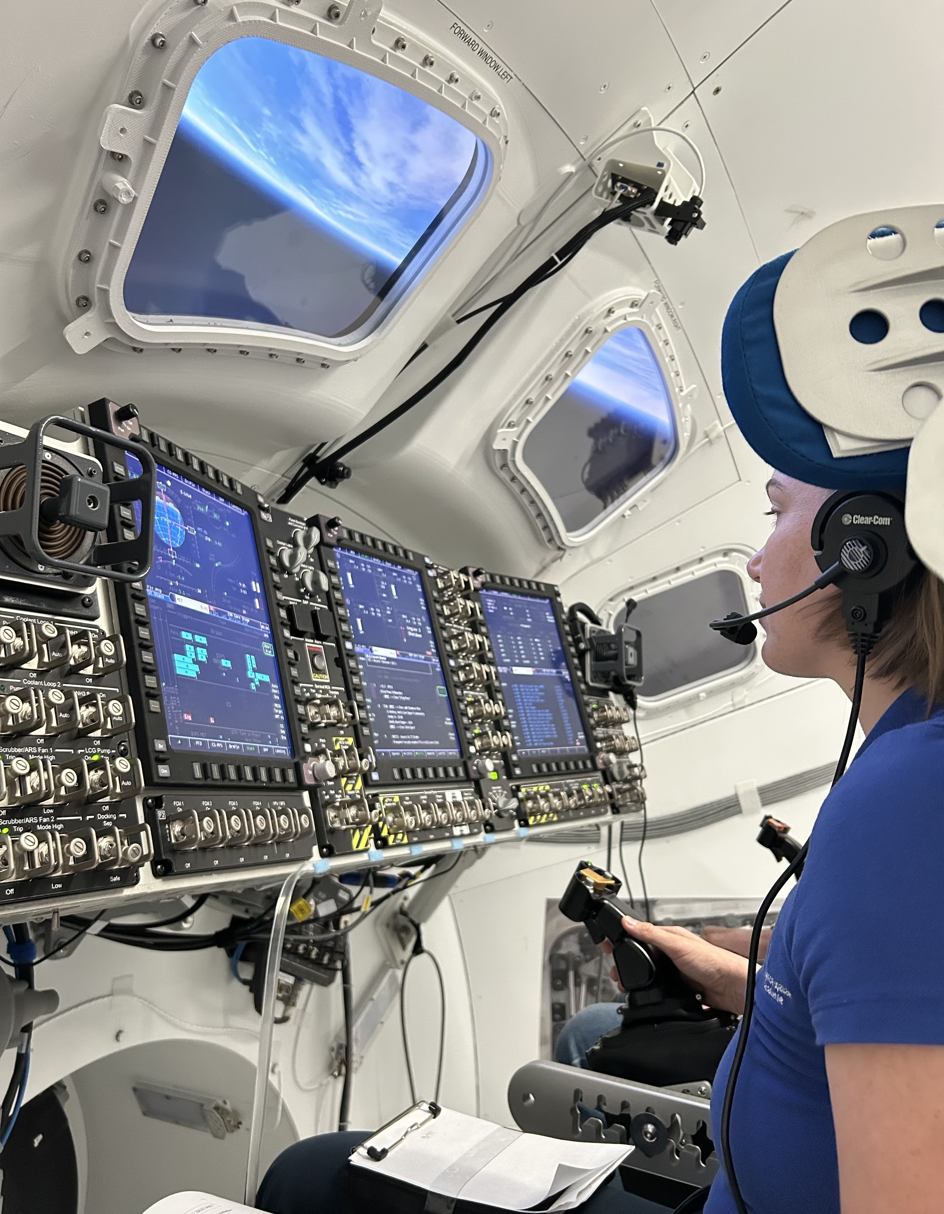 Экипаж «Артемиды-2», диспетчеры полётов и команды наземной поддержки каждую неделю часами отрабатывают различные этапы нашей предстоящей миссии. На этом фото я в симуляторе космического корабля «Орион» вскоре после выведения на орбиту. Хотя все этапы полета имеют свои преимущества, вид нашей планеты после запуска особенно впечатляет. Даже в симуляторе этот вид просто потрясающий!