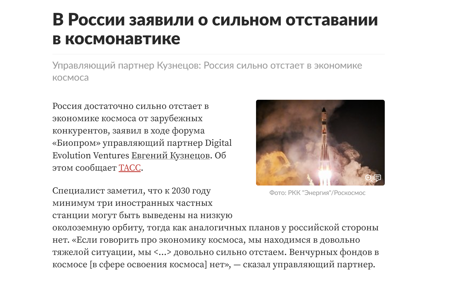 >>821239 >как механизм развития частной космонавтики Ага, не война, а сво, не коррупция, а лоббизм, не приватизация прибыли и национализация убытков, а механизм развития частной космонавтики блять