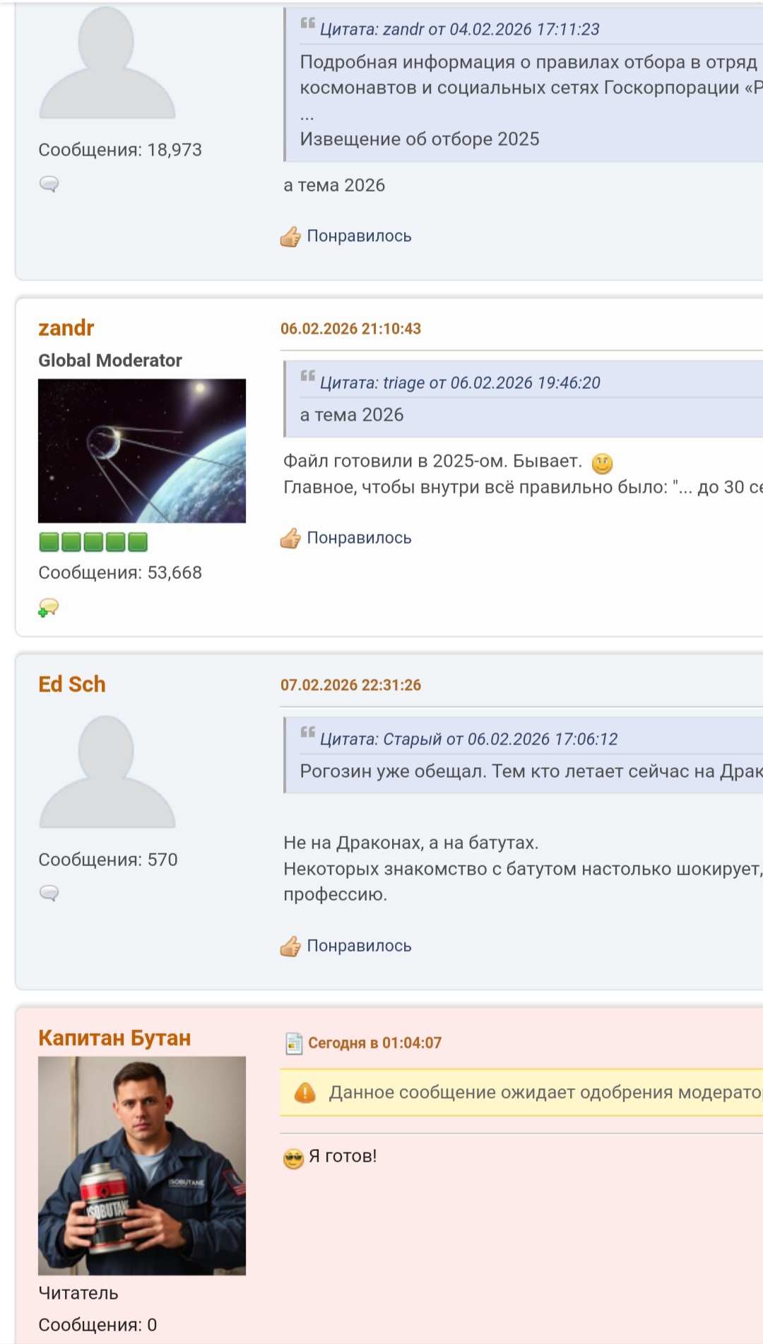 >>832218 >>832213 Хуясе вы тут поккоки. Выше пояснили что местная фауна в курсе двачерской агенды. Какая страна, какое космическое агенство, такой же и тред.