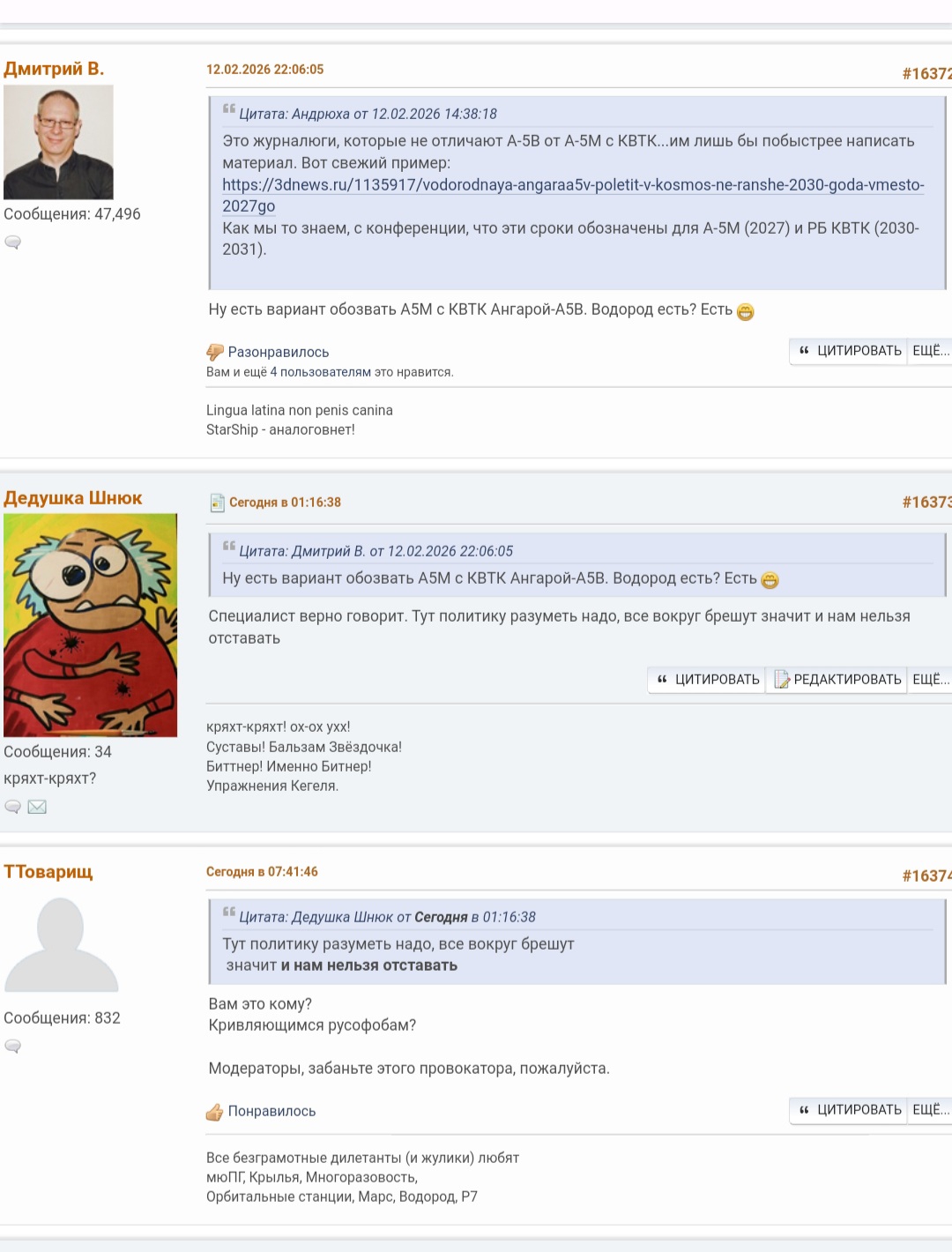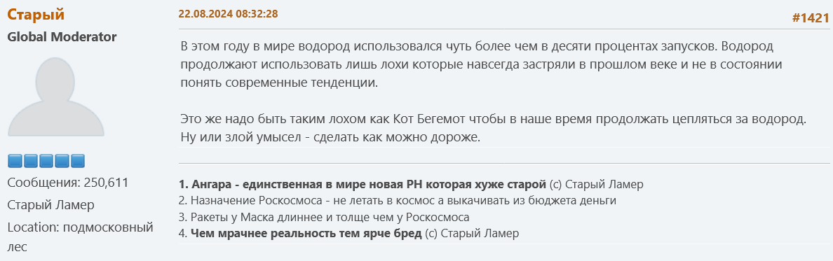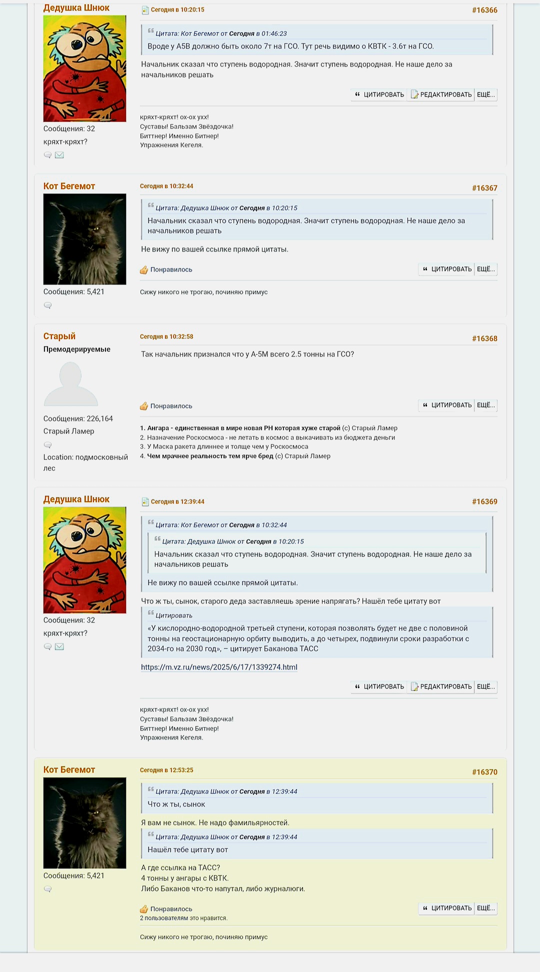 >>832552 Тролинг безусловно толст, кринжов, но тем не менее Кот Бегемот затролился про Ангару-5В. Как думаете, Кот Бегемот тоже дед или это "зелёный кот" Егоров?