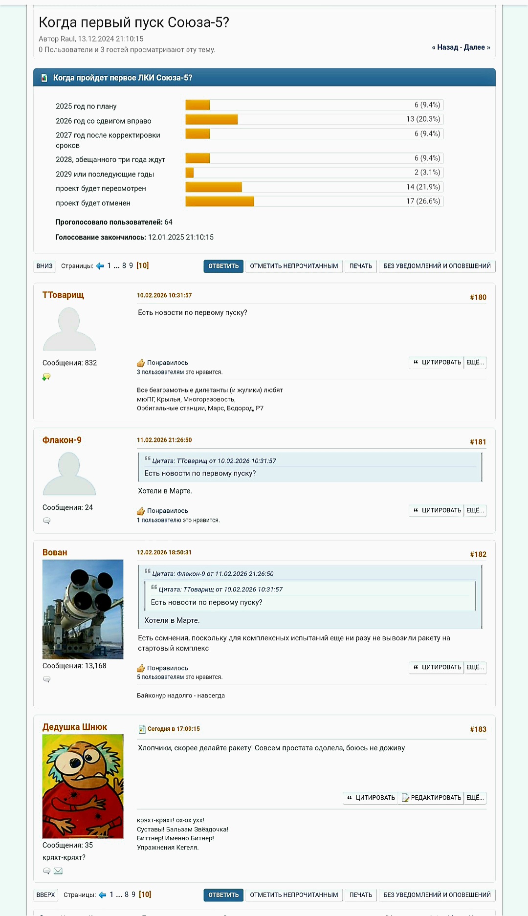 Похуй на название треда, но даже не либгнойцам понятно что обосрамс произошёл мощный. В принципе это давно уже было понятно ещё со времён лютого хейта на многоразы небоходца, просто были ложные надежды что вот щас ДимОлегыч сделает збс, или вот этот новый Бакланов сделает збс. А щас уже и китайцы многоразы начали запускать. В итоге своего аналога старлинк нет, а многораз который мог бы его выводить отложен за 2030ый. Значит аналог старлинк тоже откладывается на это же время. При том что очевидно что это должна была быть первоприоритетная задача. Массовое производство спутников похоже тоже не осуществляется. Новый корабль пткнп откладывается, хотя могли бы уже давно запустить прототип макета на Союз-пятом. Чё там кстати запускать на нём сейчас будут, болванку? Протон загублен. Ангара почти не летает. Сверхтяжа нет и даже нет его внятного проекта. После того как Маск переориентировался на Луну, никаких изменений в нашей лунной программе тоже не последовало. Про новую орбитальную станцию тоже ничего толком непонятно в свете последних новостей о планах американцев поднять её на орбиту захоронения. Будут отстыковывать наш сегмент или его затопит прогресс?