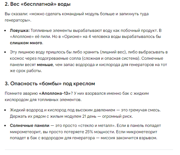 миссия артемида 1 же успешно завершилась значит как минимум солнечные панели отработали как надо, дали нужный ток сама ракета отработала, все ее движки, ускорители, движки на самом корабле все вроде как отработало система посадки вопрос в системе жизнеобеспечения как она отработает