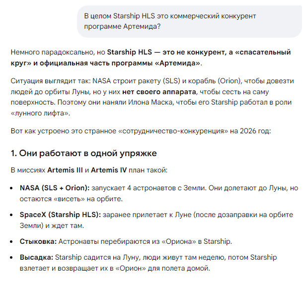 Программа Артемида - это американские миссии по исследованию Луны. Вторая миссия заявлен был полет на февраль 26 года, будет пилотируемый облет луны. Третья миссия - пилотируемая посадка на луну. Четвертая миссия - высадка на лунную ОС Gateway. Далее запасы двигателей и ускорителей заканчиваются.