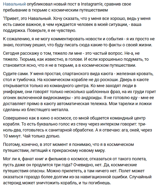 >>835069 Да что угодно может произойти в любой момент. Трудно даже вообразить, каковы ощущения в случае ЧП у человека настолько изолированного от всего остального человечества, где все зависит только от тебя, твоих знаний и навыков, хладнокровия и решительности. Когда есть ясное понимание, что никто не сможет прилететь, спасти или помочь.