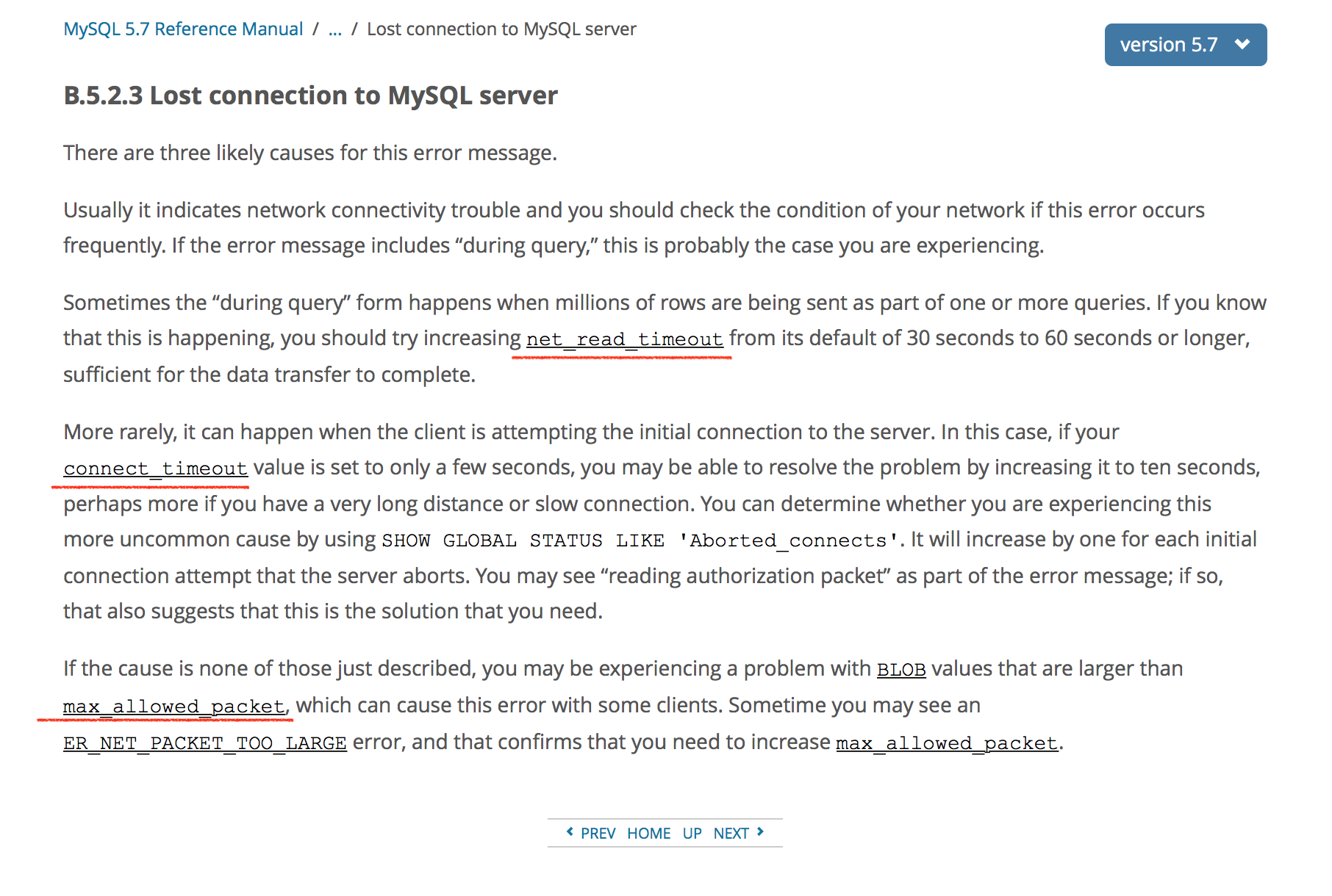 Други, подскажите, сервер на Centos 7. Есть база mysql с 500 тыс записями, она весит 4Гб. С ней не получается работать, отваливается mysql: Lost connection to MySQL server during query. Не получается ни с консоли, ни из php. Где можно подправить какие-нибудь таймауты, чтобы подольше дожидаться ответа от mysql?