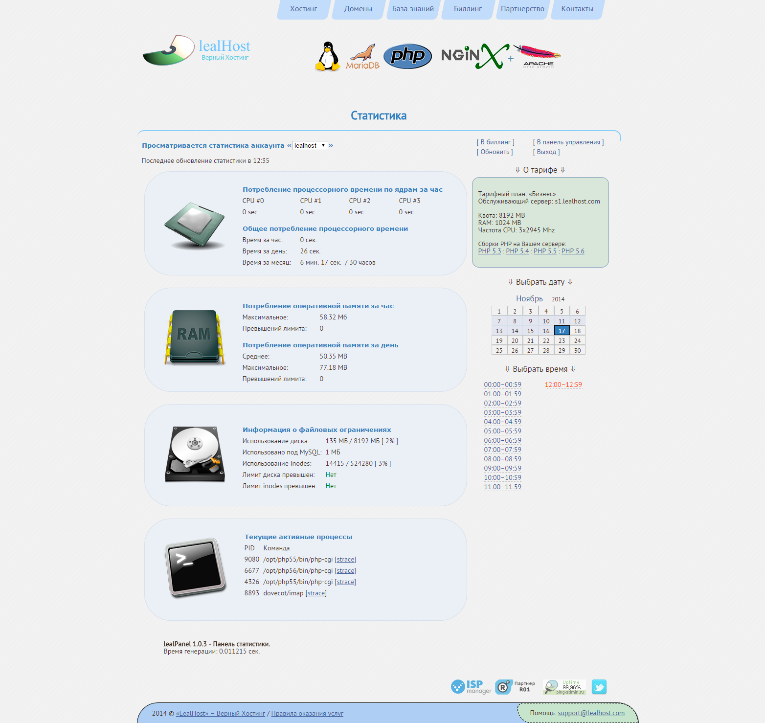 Вкратце расскажу о внутренних лимитах на основную линейку тарифов хостинга.
