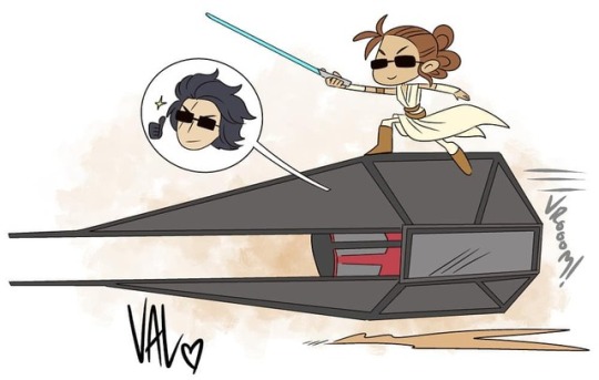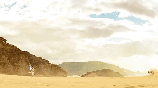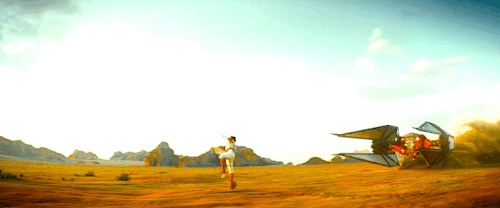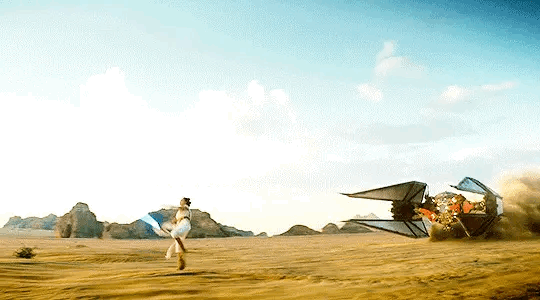 Короче, вот это все наводит на мысль, что таки Кайло будет Рей и ее сопротивленческих козлов - преследовать. Сопротивленцы сперва будут удирать по пустыне от Кайло на спидерах, но Кайло их посбивает всех (и Рей тоже). И вот то, что мы в трейлере видим, это когда она от него убегает уже без спидера по пустыне пешкодря, растеряв всех друзей (хз где они там остались), и решается на этот прыжок на его сайленсер.