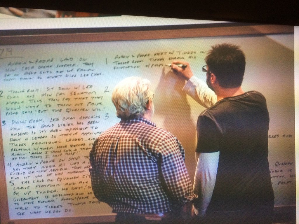 >On most shows, that would be the end of the writing process, but on Clone Wars, that’s about ‘the middle’ of the writing process, because once the episodes get into animatic \ story reel in editorial, Dave and George go through them, rewriting, adding and subtracting, etc...