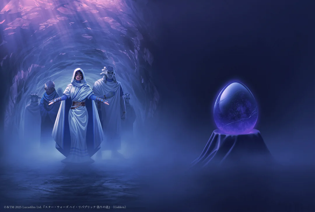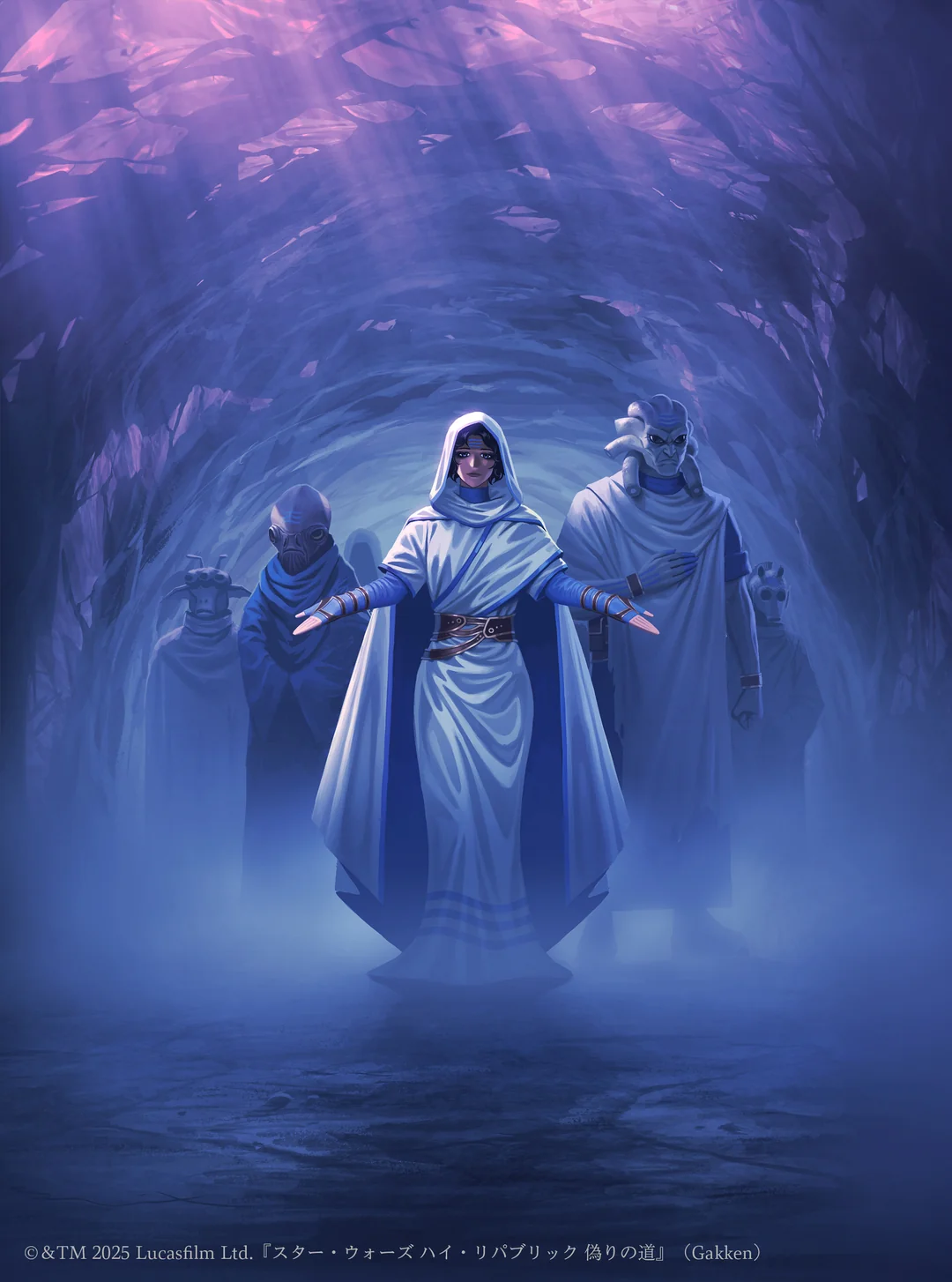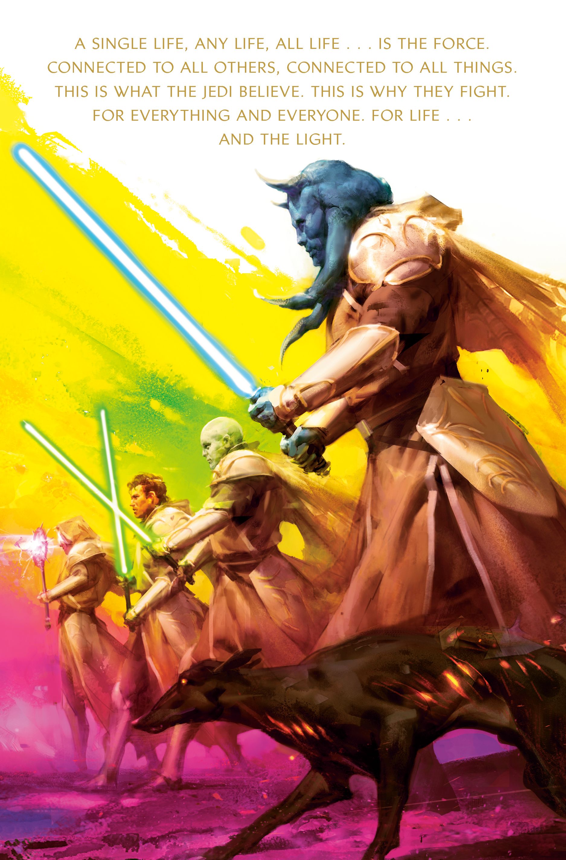 Наконец, показана полная обложка финального романа "Испытания джедаев". На ней, как и на концепт-арте, изображены главные герои книги - "Светоносная девятка".