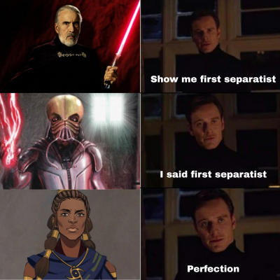 >>212514 >Опять тогрутам пришлось за Республику тащить, ахаха, бля. Мне показалось похоже на концовку девятки, но всё же не так вымучено. Они действительно ждали подкрепление, которое прибыло в последнюю минуту. Интересно, что никакого билд-апа для ОДНОЙ ИЗ ПОТЕРЯННЫХ 20 Кив Тренис в серии совсем нет. Она делает максимально шаблонные джедайские дела.