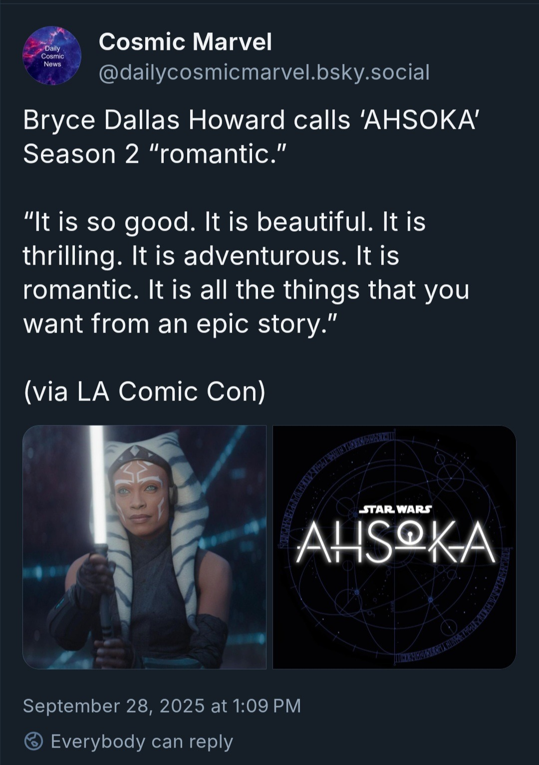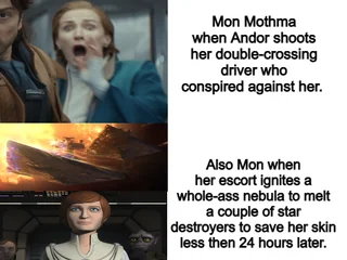 Начал смотреть Галактику, а там Старкиллер оказался. И пиздатые космические бои, с участием хуевой кучи истребителей; сомневаюсь, что во втором сезоне Асоки смогут что-то схожее по масштабам показать, что бы там Филоний не анонсировал.