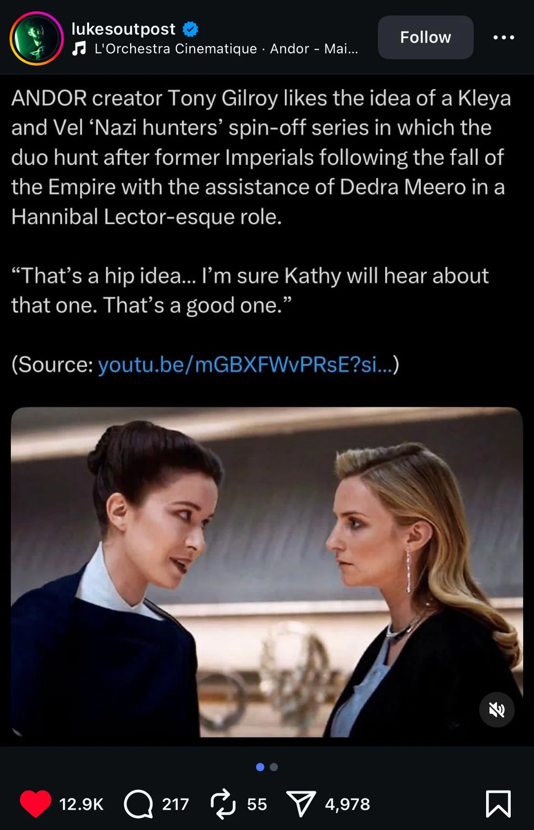 Кстати, заметил, что, когда Со в финале смотрит в окно на Священный город - в фильме он при первом своём появлении отходит именно от этого окна. То есть, в каком-то смысле, Андор заканчивается буквально за несколько секунд до начала Изгоя, точно так же, как и Изгой закончился прямо перед НН.