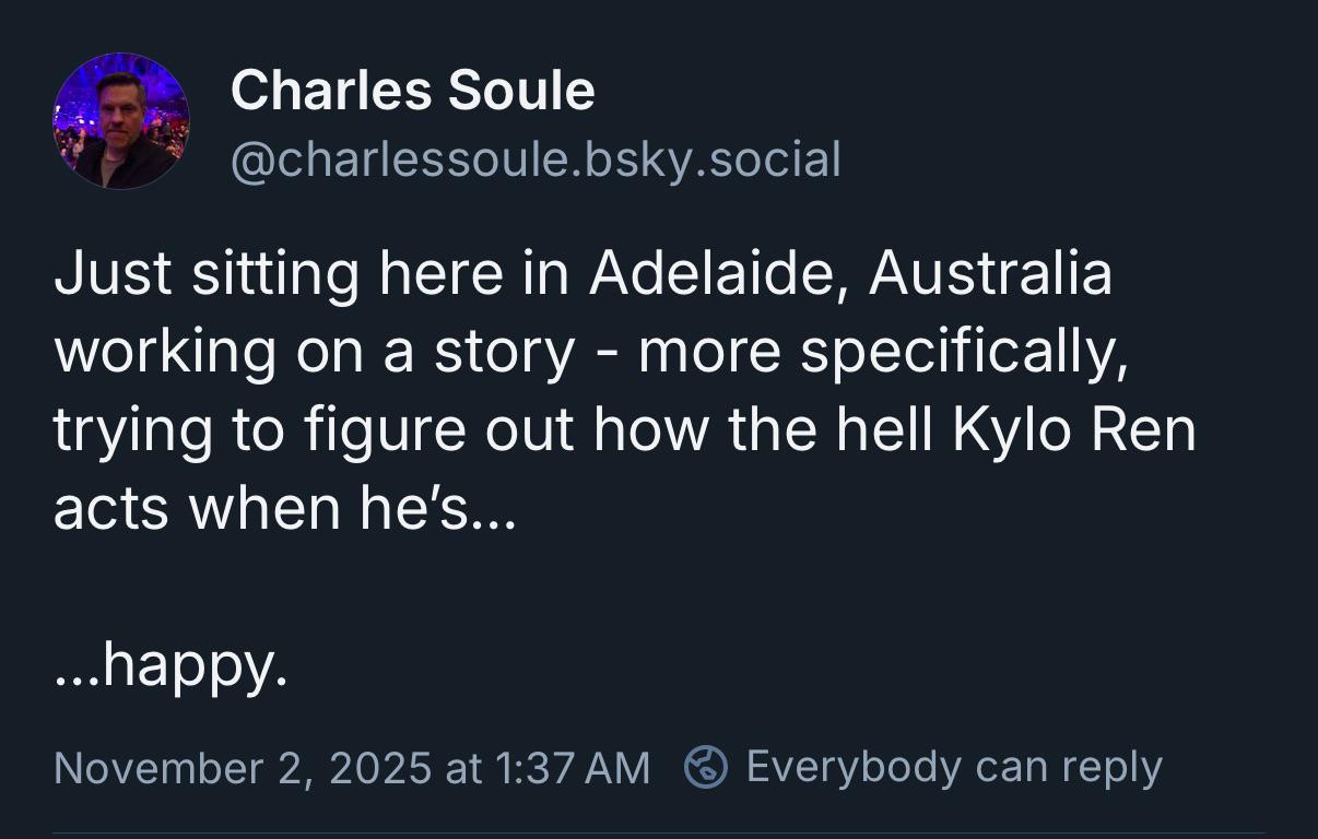 Последние новости: С фильма про Рей сбежал очередной сценарист. Адам Драйвер и Стивен Содерберг рассказали, что два года втайне разрабатывали фильм "Охота за Беном Соло", который в итоге был отменен верхушкой Дисней. Продолжается выход серии комиксов про Кайло Рена "Legacy of Vader". Анонсированы романы про Рей и Лею и Финна и Джанну, которые выйдут в 2026.