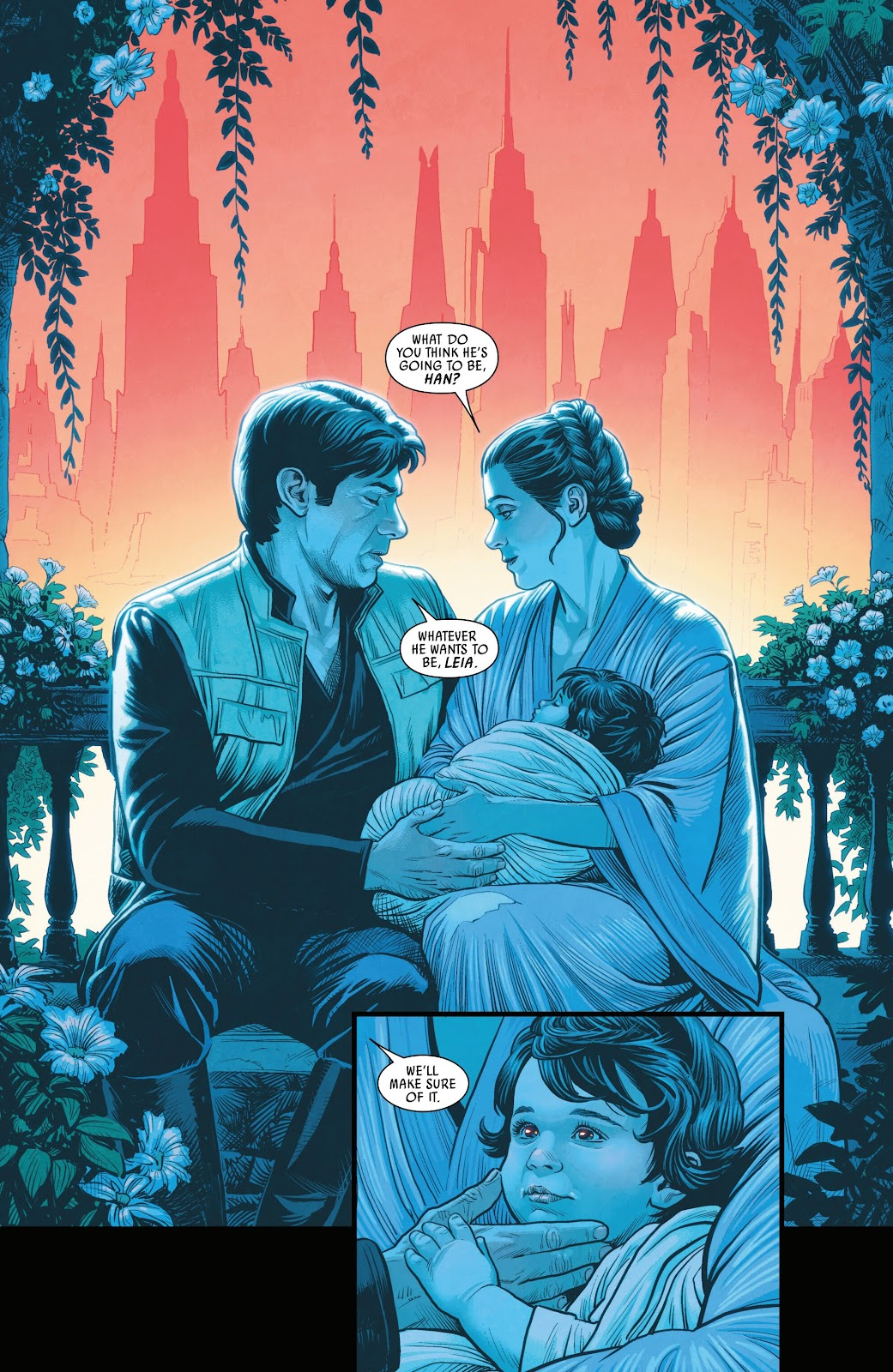 И еще кадр с младенцем хорош. Такие ламповые Лея и Хан, полные надежды на будущее.