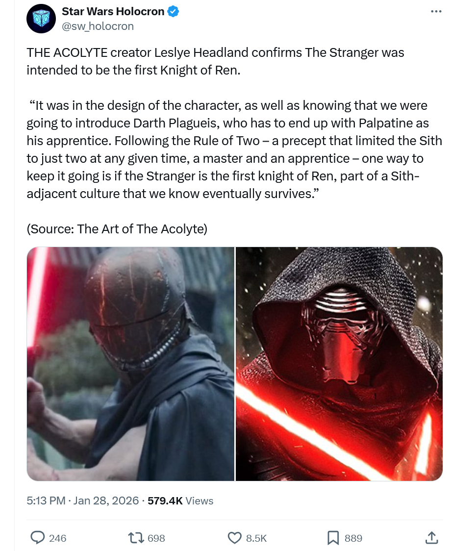 >продолжение Раз Филоний к власти пришел, а в своё время шоураннера Аколита консультировал, то теперь, по дружбе, в анимации может продолжение организовать.