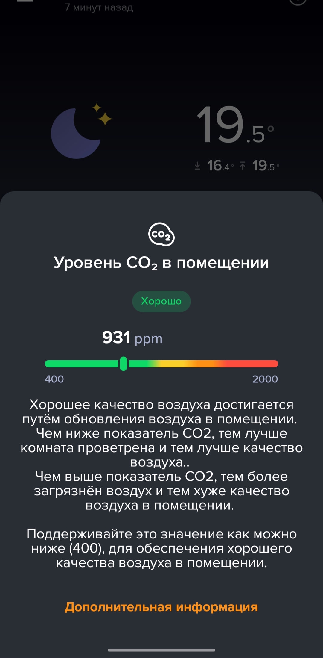 Ну вообще смотри. По моему наблюдению, если ты не открывал окно в комнате больше 5-6 часов - то вряд ли в ней будет хороший воздух с нормальным CO2. В идеале если смотреть по циферкам, то надо проветривать помещение вообще каждых 3 часа.