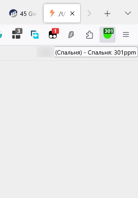 Вот так выглядит плагин браузера с качеством воздуха (CO2). Если параметр станет желтым, то желтеет и все окно браузера (настраивается). Второй пик это мини-приложение из магазина приложений Windows (поддерживается и отображение информации в плитках меню Пуск). Плитками не пользуюсь, поэтому нет возможности оценить.