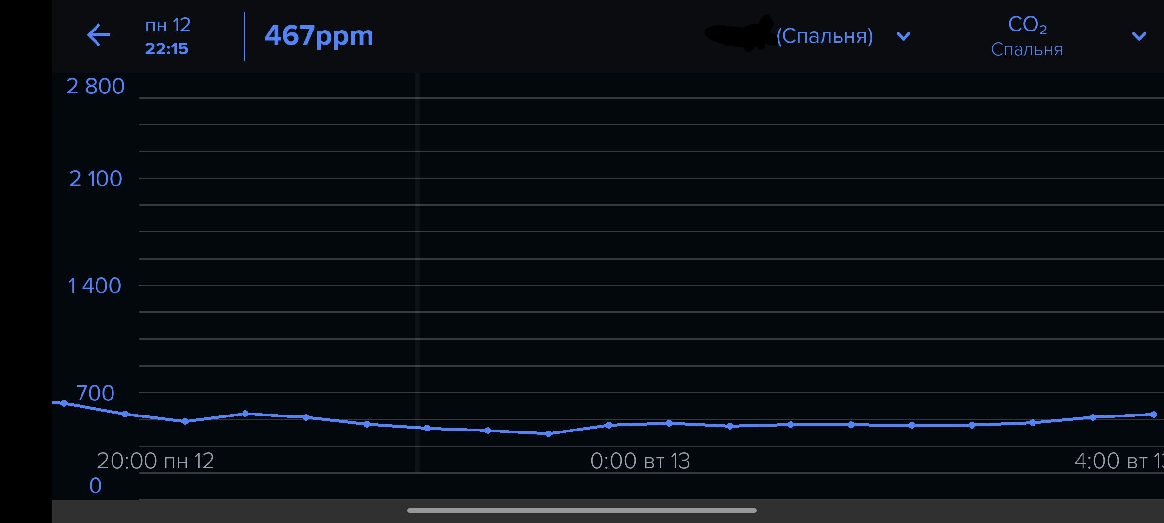 > 1100? У тебя там щели в сантиметр в стенах? При закрытой двери и окнах в квартире одному в комнате 10 квадратов за ноч можно тыщи 2-4 напердеть а то и более От 1100 до 1900 видел (иногда забываю дверь закрыть в комнату). Но больше 2000 точно не было. Голова и правда болит. Поэтому теперь всю ночь научился спать с открытым окном.
