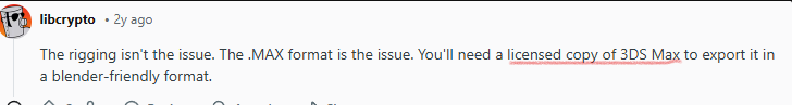 Ребята, может кто-то посодействовать? Мне нужно переконвертить модельку из .max в простой .fbx, онлайн-конвертеры не подходят т.к. размер модели достаточно велик -- 150мб, и сам макс установить у меня нет возможности. Буду очень благодарен Вот эта модель https://disk.yandex.ru/d/6um_42o2GBkAvg