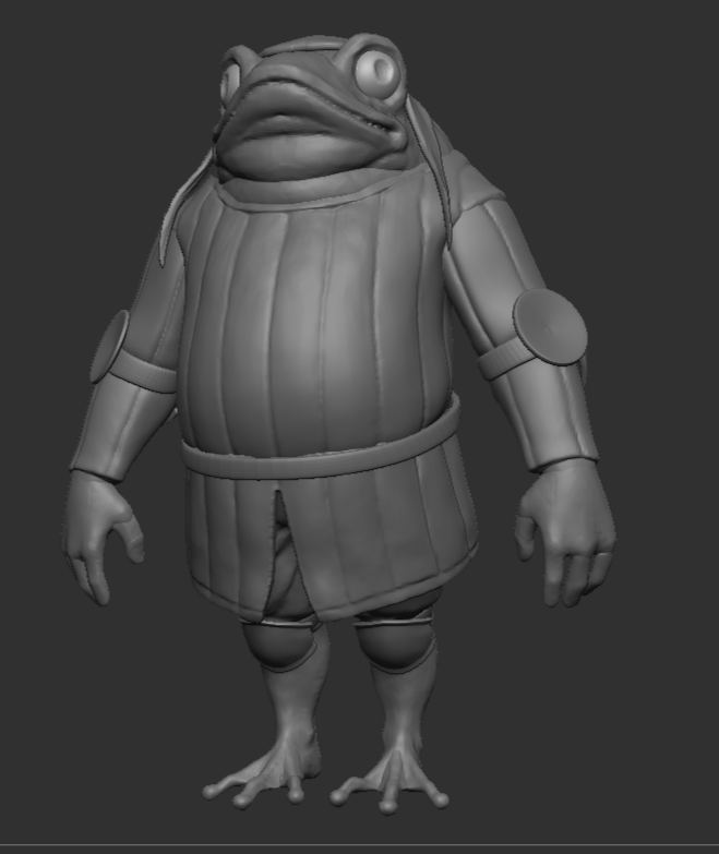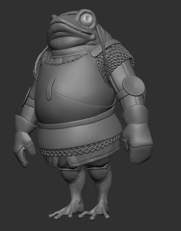 В планах сделать так чтобы жаберс был функционально слоенным, чтобы каждый слой каким-то хуем (не знаю каким) был опционально скрываем (но сама работа полностью сделанная вплоть до рига), как в зебре с сабтуллами. Должно ролучиться три разных жабы. Жаба совсем бедная, в бре и рубахе, жаба побогаче в поддоспешнике и с налокотниками-наколенниками, а потом жаба смародерившая откуда-то хауберк, латный нагрудник и юбку. Жаба в поддоспешнике будет с годендагом, а жаба-мародер в латах с алебардой.