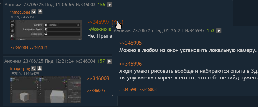 >>345907 > подавляющее большинство людей вокруг Блендера это хоббисты, дилетанты, развлекающиеся ну хоббисты вон хотя бы удовольствие получают https://rutube.ru/video/1960ded6bcdf6a7b6b67cca7b5ba9562/?r=wd&t=225 а вкотуны на серьезных щщах только думмоделят (есть такой термин? это тип как дуумскроллинг, а то щас придумал,есдли что пользуйтесь бесплатно мы же в блендер-треде)