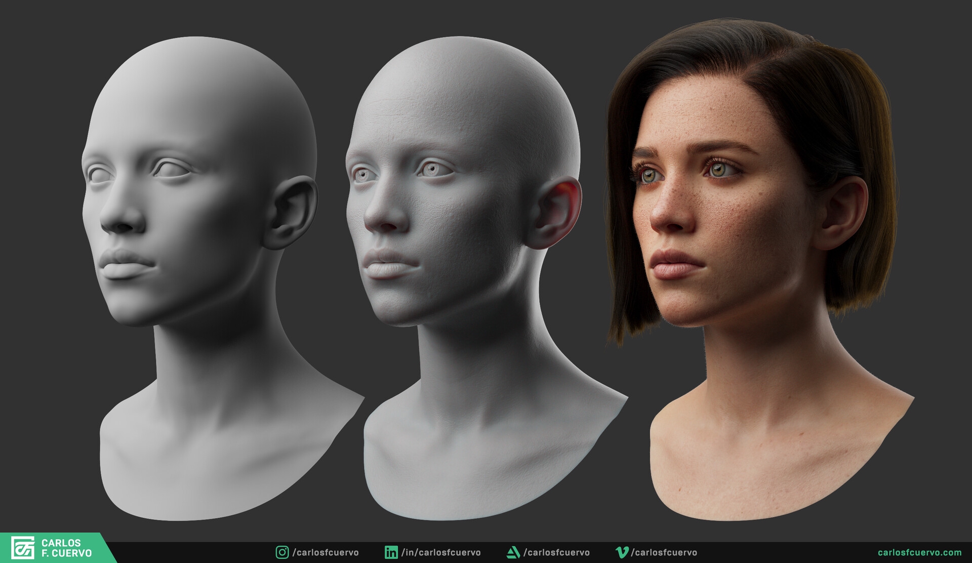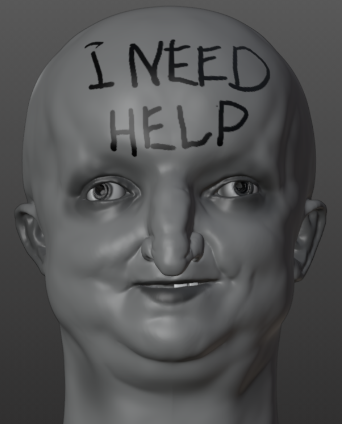 >>346703 Крылья носа чёт слишком огромные. Ну и как отметили уже, челюсть слишком сильно посередине сужается. Попробуй в виду снизу на неё посмотреть и посравнивать с рефами реальных голов. У тебя линия от угла челюсти до подбородка скорее всего слишком прямая, надо её наружу выгибать немного