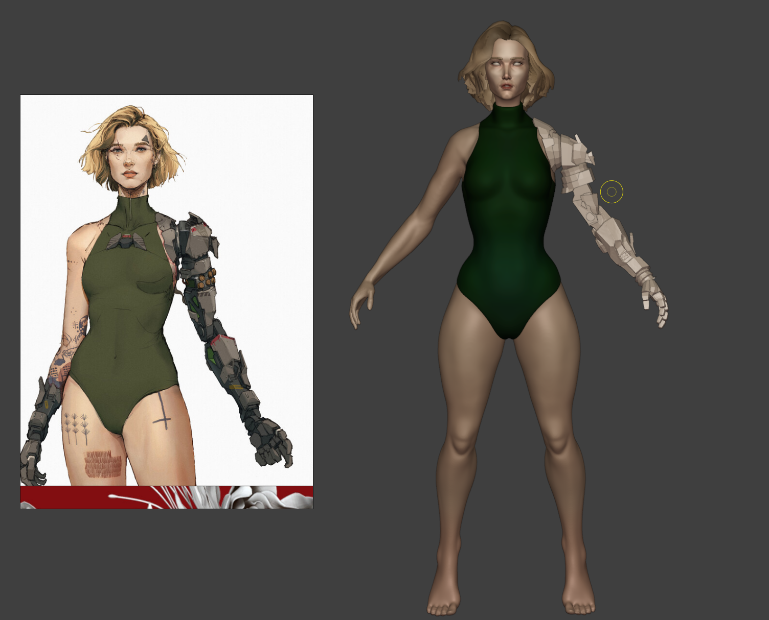 >>347338 Там не кожа не та, а одежда. Почему она так странно блестит, почему нет фактуры как на рефе? вороной+колор рамп+бамп и раффнес скрутить чтобы не блестело так странно. И в целом такой подход неправилен, когда на явно стилизованной/упрощенной геометрии с минимумом деталей и внезапно материалы под реалистик мимо