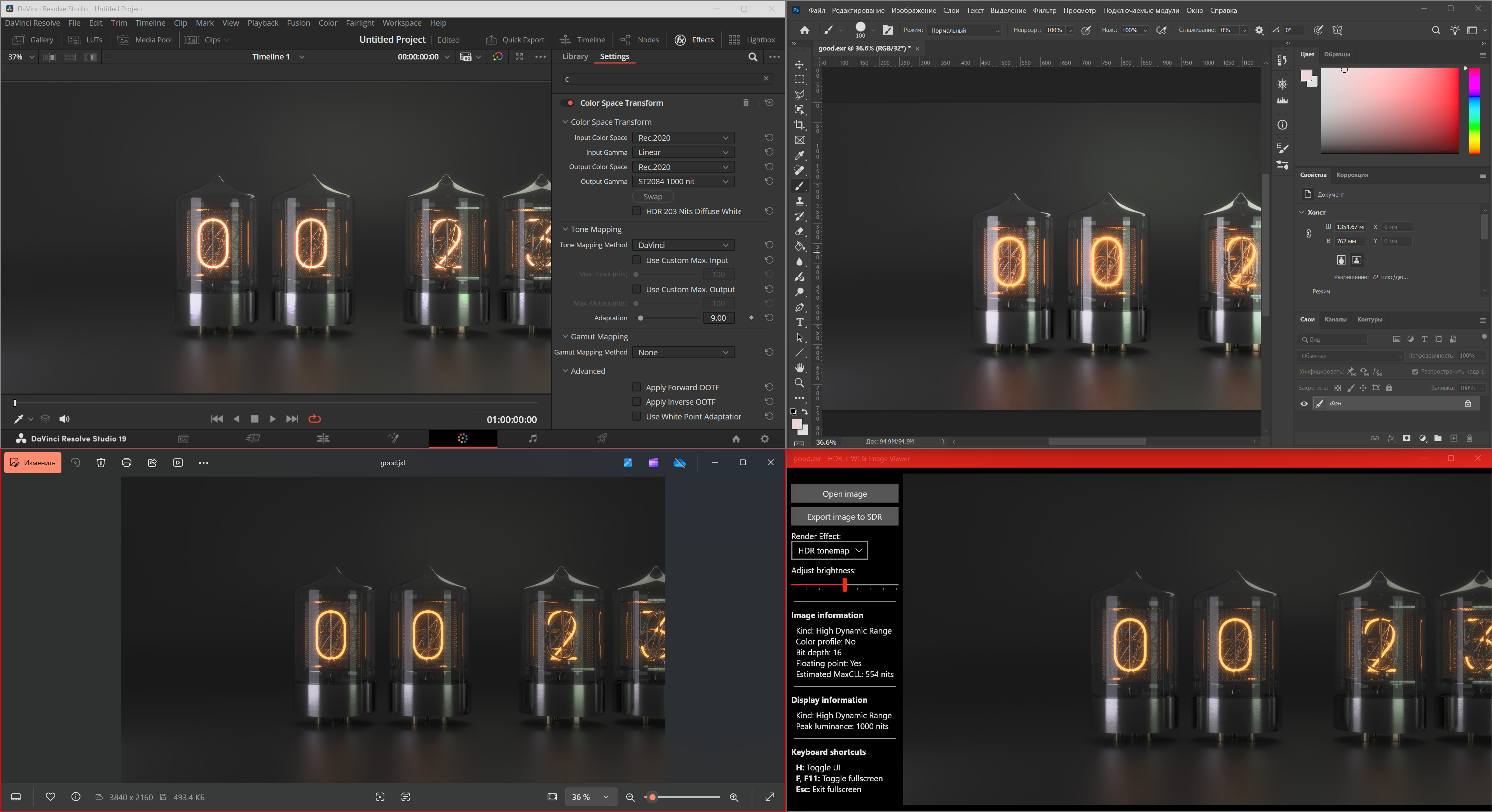 >>347238 В одном цветовом пространстве при линейной интерполяции в любом софте результат будет одинаковый. Тут может дело в цветокоррекции или в чём то другом.