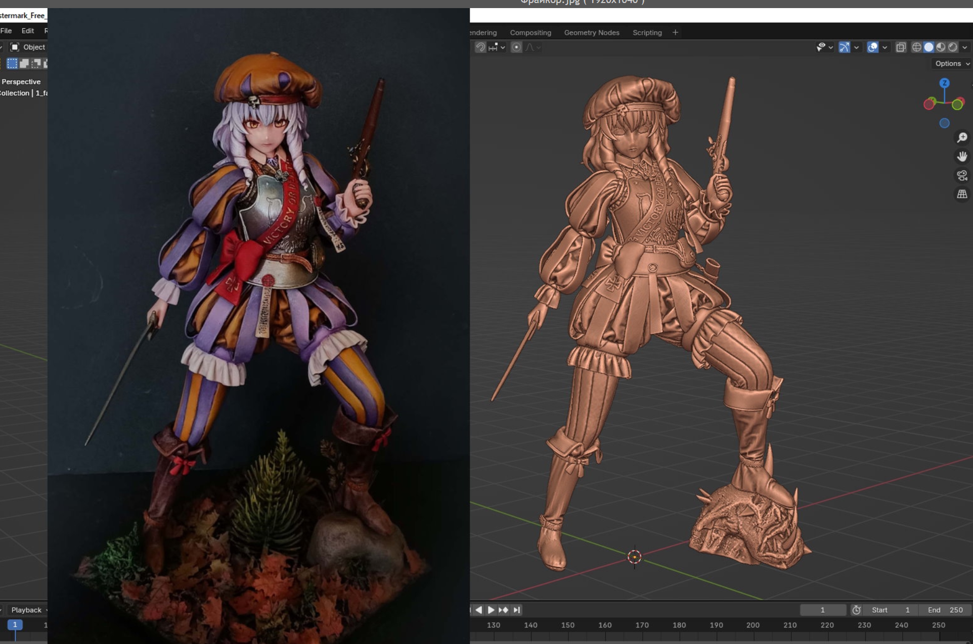 4. Если сканер не вариант, то домашняя фотограмметрия. Топ по этой теме Zephyr. Идеал и минимализм: у тебя есть центр (гвоздик), к нему натянута нитка к мелкому треножнику и телефону. Ты ставишь по кругу смартфон/камера на разных высотах, делаешь фотки. Свет статичный искуственный, вертится камера, а не фигурка. Фигурка стоит на куске рекламной газеты, максимально цветастой и аляповатой.