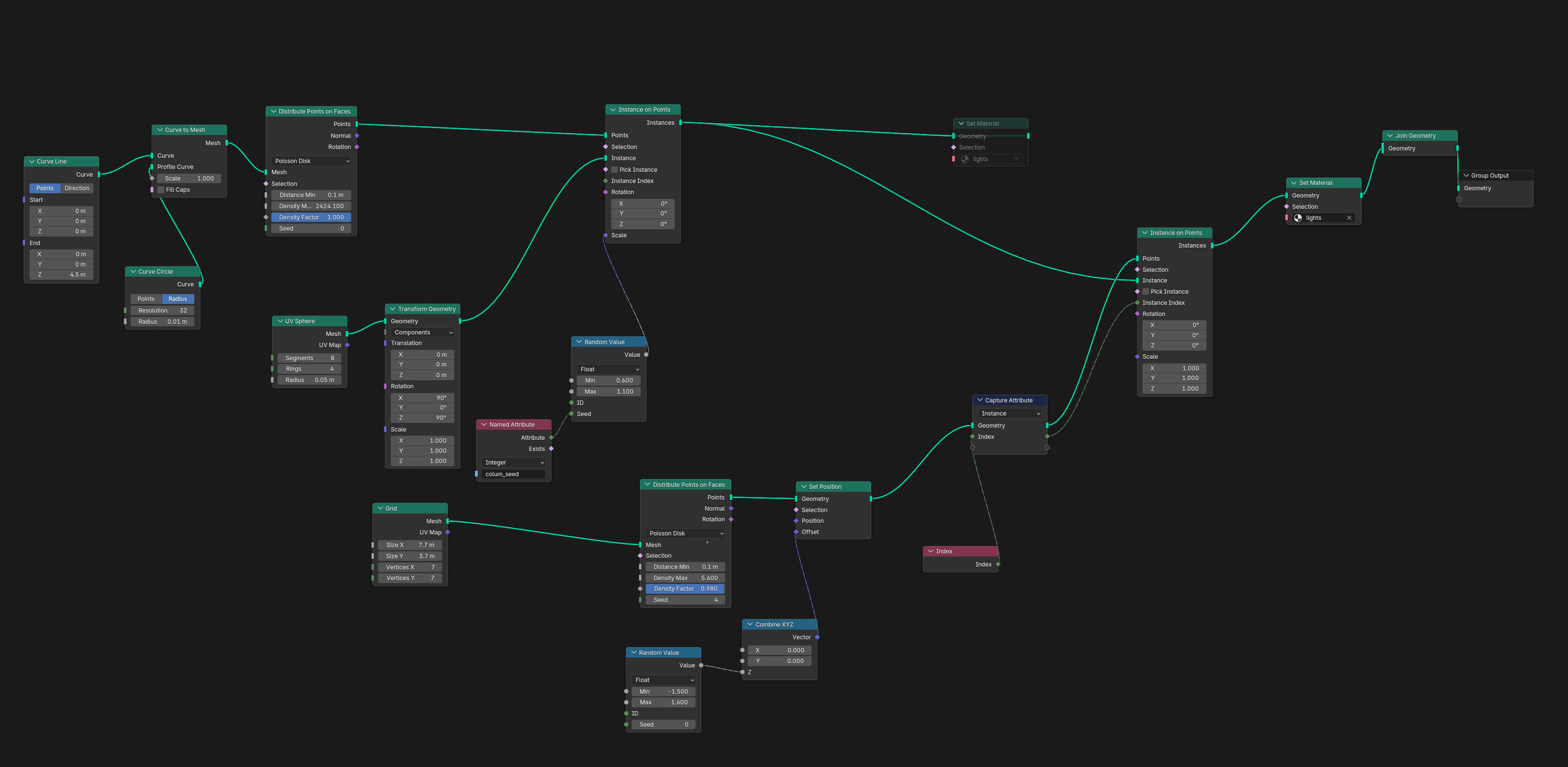 >>346742 → Чуть доработал эти ноды. Они работают только с сабдивом 6, а с ним файлы весят безумно много. Поэтому на входе лучше разделить геометрию, накинуть сабдив только куда надо и объединить обратно. Может кому пригодится. >>348385 Я там нормали в ротейшн сунул, а не в вектор. Но хуй с ним, все равно криво получается, для моей задачи не подходит. Решил проблему гениально - заменил каплю на шар.