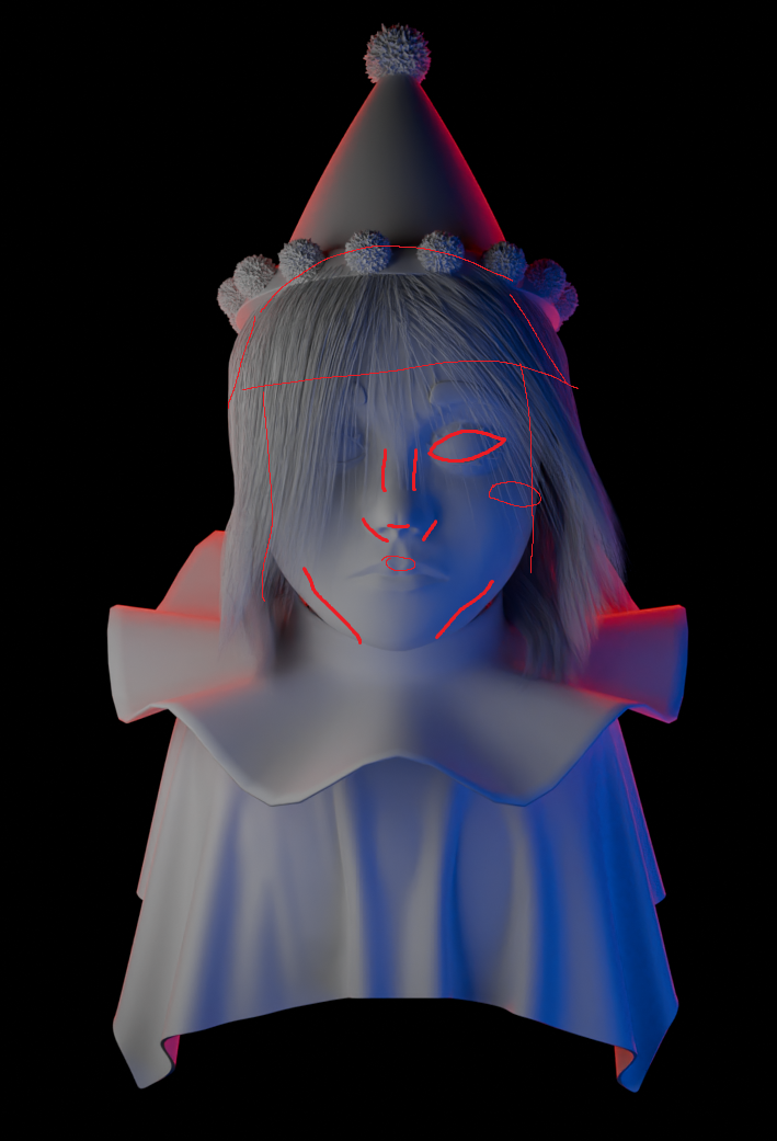 У рефа губы ещё толще, и подбородок выше к губам, а так же другая форма носапырки прям такая еврейская картошка нехуйственная, ещё реф сбоку полноценного не нашел, но под углами +- тоже самое. Мб потом как нить допилю придерживаясь к рефу сильнее и ещё многие моменты вроде ямочек на краях губ и складки вокруг лица не проработаны в виду полигонажа, но эт пох, на текстуринге домалюю
