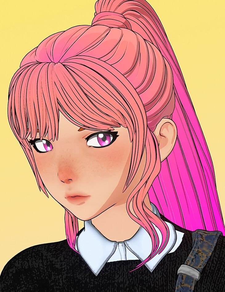 Делаю/переделываю модель персонажа для игры. Стиль "что-то вроде аниме, но не аниме".