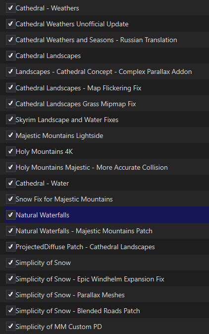В общем, всё excited. Если вы тупой как я, то ограничьтесь одним Skyland Alo и какими-нибудь erm горами, ибо они имеют лоды для диндолода. Ща, попробую прогнать. Снег под крышей хорошо убирается сосом, без него есть кривоватый NSUtR, но да хер с ним.