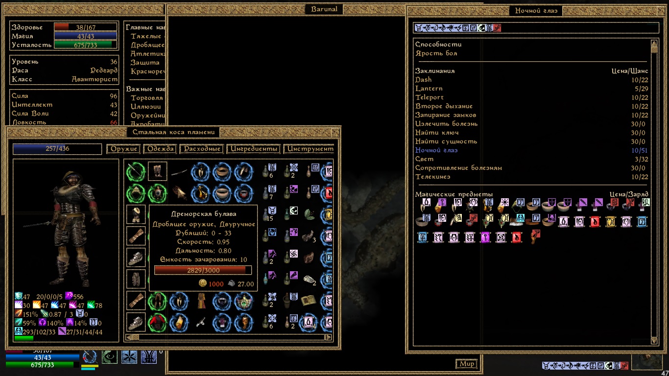 >>2021432 Со всеми перками, легенларностью, без концентрации и брони, а ведь еще двигаться и атаковать нужно. И все ради чего? Чтобы через минуту опять так же плясать, а в конце будет награда: серебрянный кинжал, зелье левитации и 200 септимов.