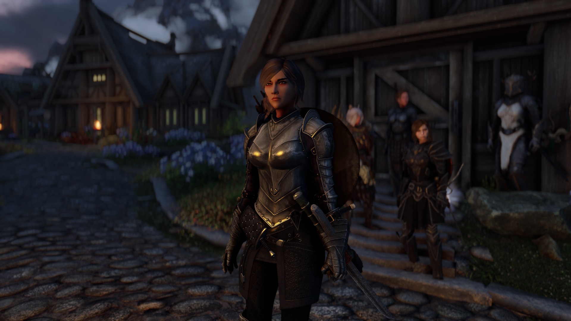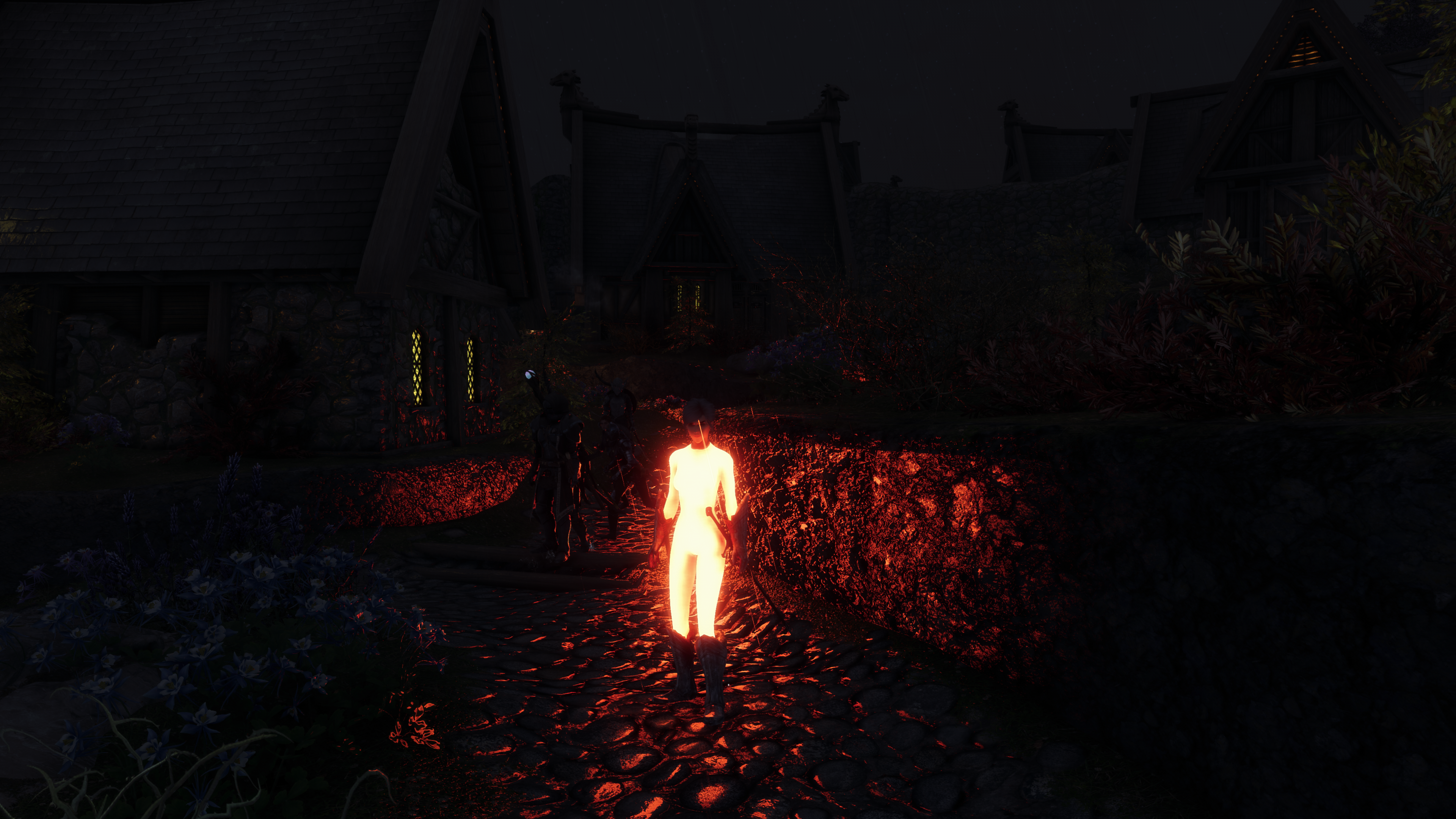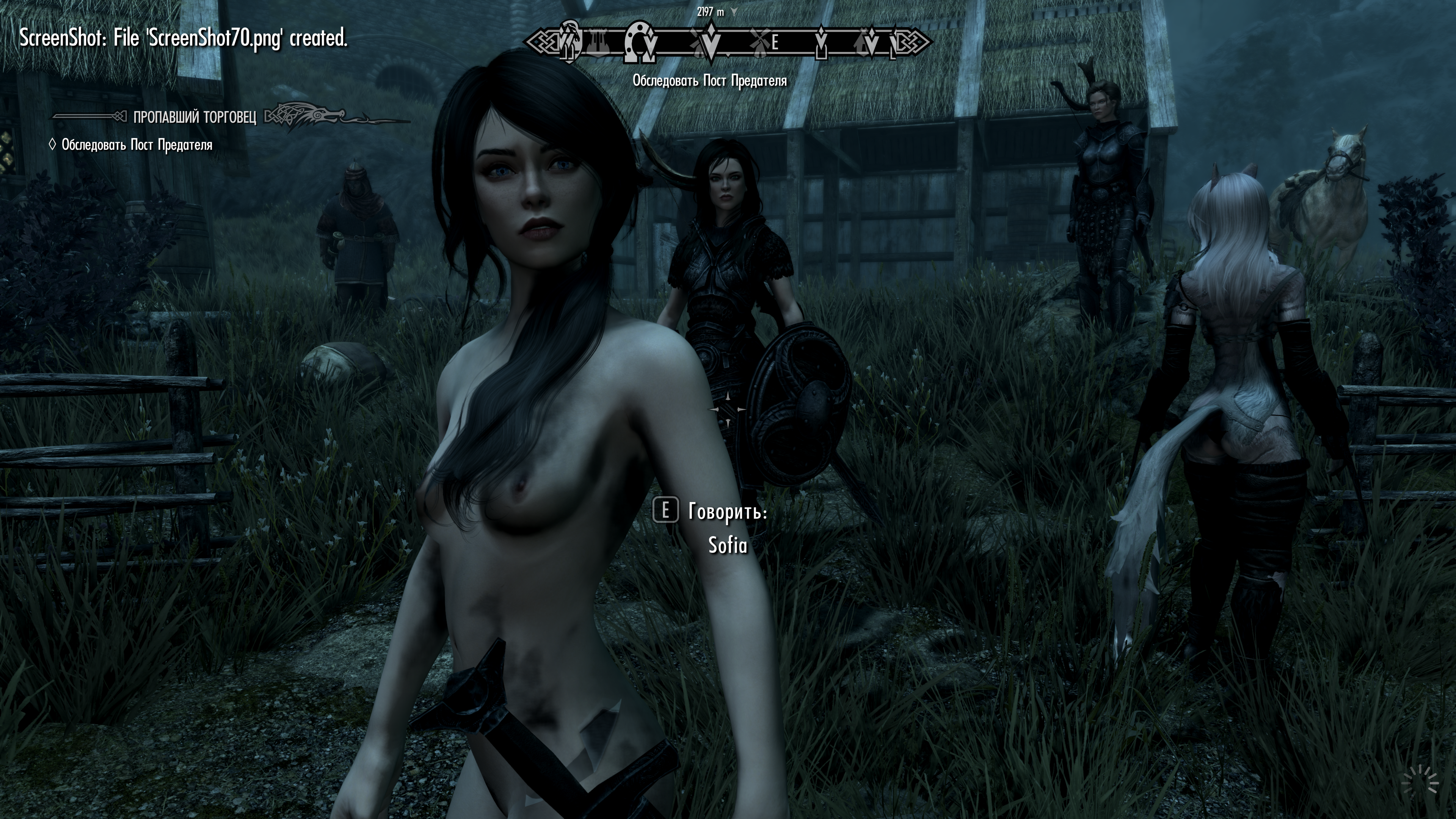 Сначала я обнаружил, что есть моды, добавляющие персонажей, которых можно взять в команду, и там не просто кошкодевки, а полноценные дополнения с озвучкой и интерактивностью с миром — вот эта девка обменивалась репликами с другой девкой, которую тоже можно взять в команду, я охуел: Light and Shade SE https://www.nexusmods.com/skyrimspecialedition/mods/77993