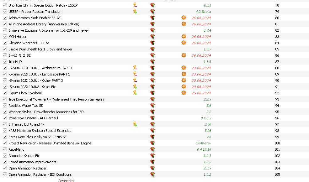 Сделал ещё раз, по гайду, заработало, спасибо. В прошлый раз я то ли Немезисом неправильно пользовался, не зная, что он устанавливает не только моды, которые у него отмечены галками, а ещё те, которые просто есть в папках, то ли обязательно надо было делать виртуальный мод Nemesis Output, который не указан в гайдах на установку, но есть во всех видео.