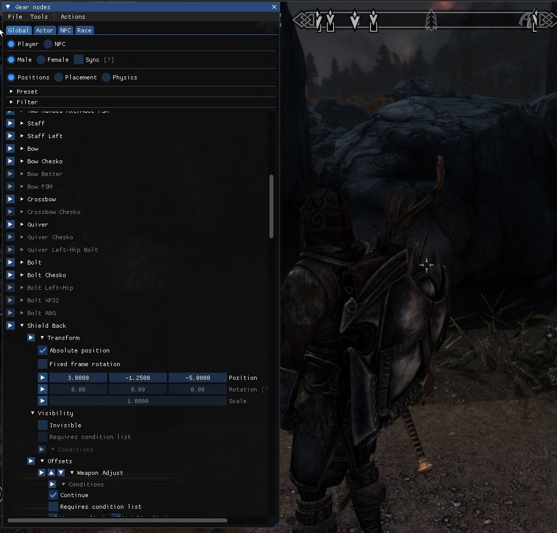 >>1964785 → Саму физику фиксит SSE Engine Fixes, чтобы при микроскачках до 60.001 (ограничения фпс работают не всегда точно) предметы не прыгали. Дальше для конкретных итемов есть позиционеры, начиная с самых древних типа Jaxonz Positioner.