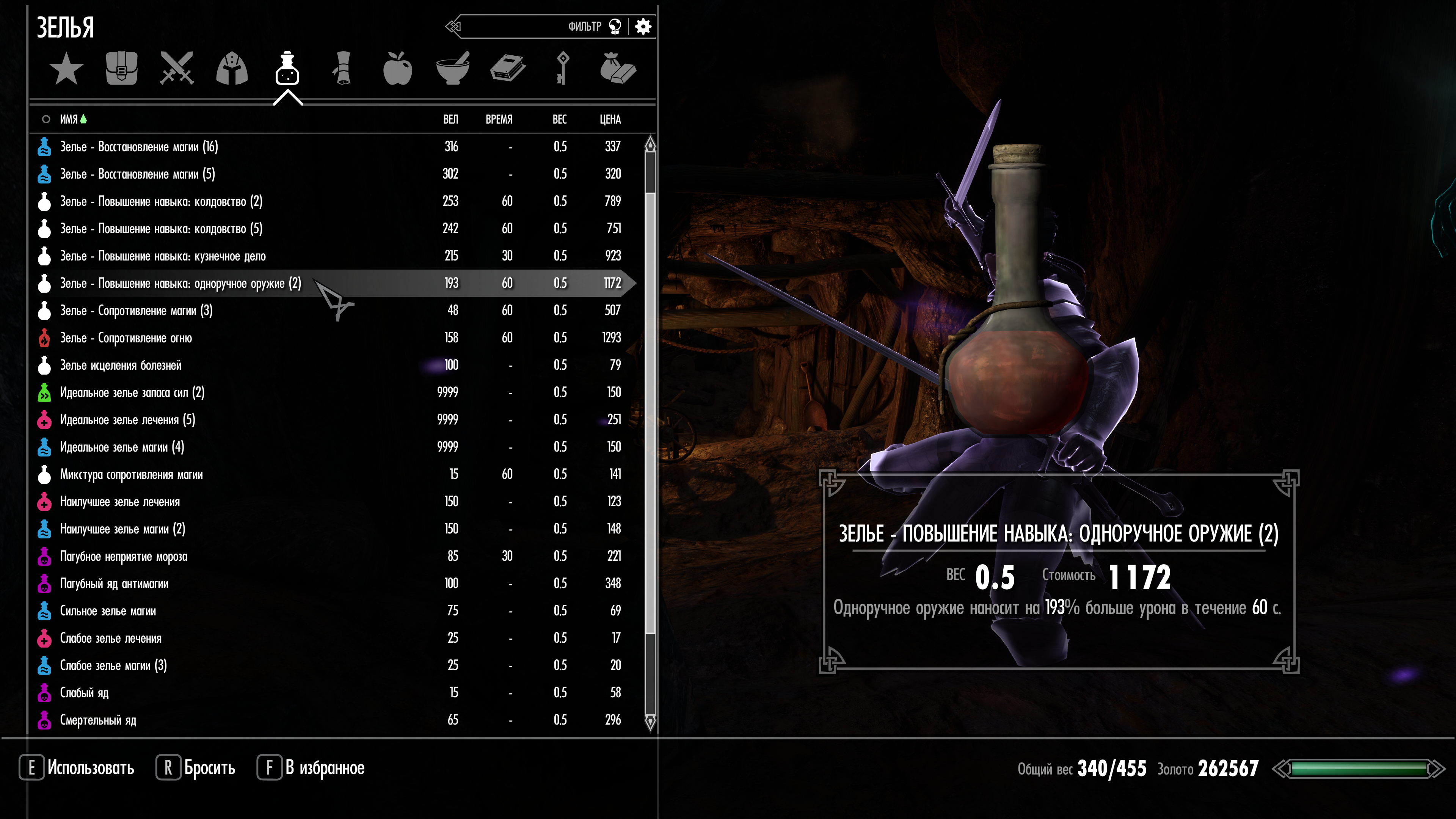 Например, я рублю с двух одноручных мечей, переключаюсь на призыв огненного атранаха, хочу взять мечи обратно, и тут я должен: 1. Открывать менюшку по нажатию Q и выбирать меч для левой руки правой кнопкой мыши; 2. или Открывать меню, переключиться на группу с мечами, где они забиты на конкретные руки, и выбрать её.