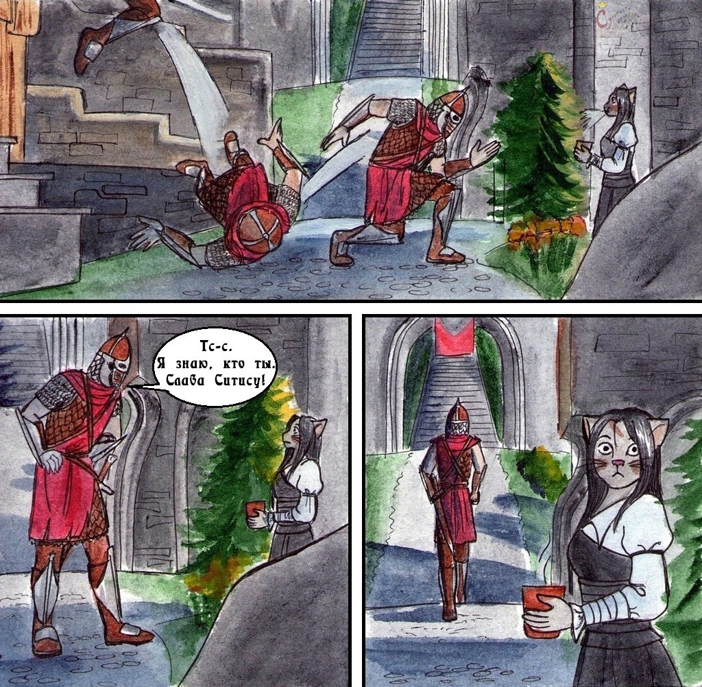 >>1980432 >>1980467 Это перерисовка одного оче старого комикса автора с ником nolore, во времена морошинда. Комикс был довольно известен, но вы его не застали ибо или ещё не родились тогда, или были очень маленькими. В нем было много рофлов про игру, но не было прона, хотя авторшу просили. Комикс она очень давно бросила. А это чья-то перерисовка, если присмотреться то видно что это не оригинал, оригинал чуть лучше нарисован.