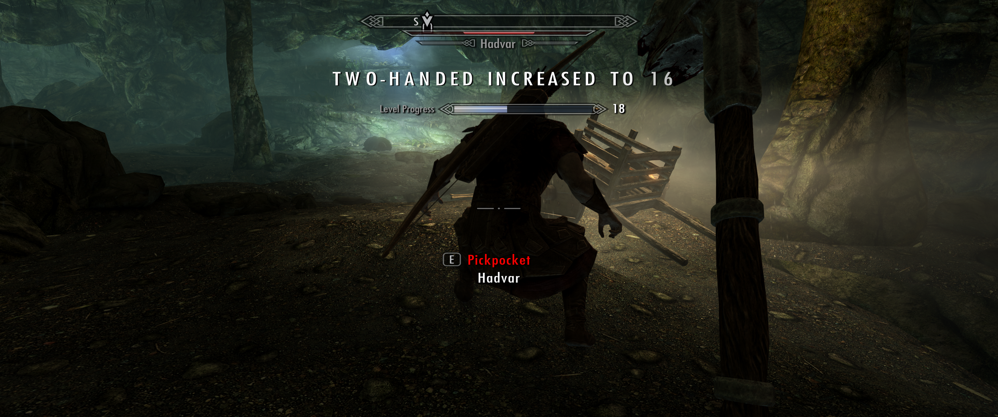 Если со скрытностью всё понятно - бьём старого деда в пыточной, то вот с остальным немного сложнее. Да, это тоже известный старый эксплоит - бить Хадвара/Ралофа в комнате с медведицей, одно только но - это займёт слишком много времени и... Да, я этим занимался, играя в Скайрим на свиче, лол. Снимал джойкон и просто начинал махать ими, активируя атаки. На прокачку таким образом одноручного оружия и двуручного до 100, у меня ушло, внимание 16 часов реального времени. Скриншотов со свича у меня не сохранилось, поэтому придётся вам поверить мне на слово. Так же, можно немного прокачать стрельбу, тратя стрелы на Хадвара/Ралофа/Деда, и, если вы совсемотбитыйнахуйтакнеделайте - разрушение.