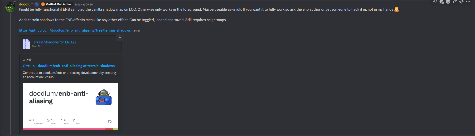 >>1984480 >>1984481 Когда стоит ЕНБ и там включена опция Terrain Blending, она делает смешение поверхности земли и объектов, которые к ней примыкают. Но для объектов, которые покрыты снегом через multipass материал, это не работает, потому что второй проход метода multipass происходит позднее, чем смешение. И получается, что смешение ЕНБ уже сработало с текстурой камня, а потом сверху был нахуячен снег, и получается плохо. Вариантов два: 1. Отключай Terrain Blending в ЕНБ, если у тебя стоит Simplicity of Snow или Better Dynamic Snow версии 2. 2. Удаляй Simplicity of Snow и ставь Better Dynamic Snow версии 3. Опционально можно почитать кое-чего на эту тему: https://www.nexusmods.com/skyrimspecialedition/articles/5172