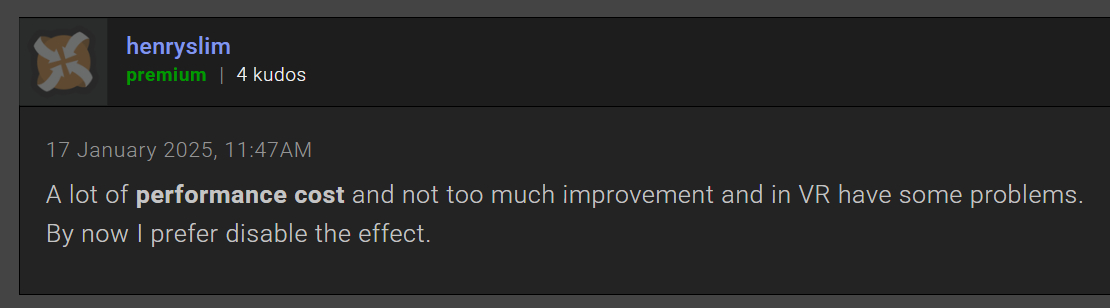 >>1989125 Да кто ж против, просто угарно коменты читать где чуваки открывают для себя что опенсурсное глобальное затенения такое же тяжелое как клозедсурсное. И по мере обрастания функциями вся эта галера с кучей плагинов раскиданных по всему нексусу по сути те же лапти только в профиль для конечного пользователя.