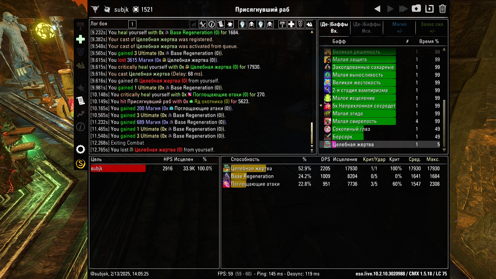 >>1988476 > только надев хайленд Грустно. > и сожрав стаминной еды А что, по-твоему, там должно быть? > или есть какие-то очевидные вещи, которые упустил? Ульта сдаётся под ОБ (Off Balance, трекай аддонами, например, PenTest'ом), в идеале заряженный луч тоже. Аптайм дорожки (как следствие - и глифа на спд / впд) в пизде. Ловушка не нужна (бафф у тебя уже есть, а урон занерфлен), вместо неё вроде красный дрейн должен быть. А если играешь с дрейном, то вместо огненного глифа надо абсорб стамины. > как в него интегрировать барсвап? ЛА - сразу скилл (в идеале без каст тайма, чтобы свапом случайно не прервать каст) - свап, потом ЛА - сразу скилл. > какие из ла надо прожимать? Комбинация "ЛА - свап - ЛА" - лажа, т.к. у ЛА свой гкд в 0,7 секунды, а твоя задача вместить в гкд скиллов (1 секунду) и ЛА, и скилл, и при необходимости свап. Можно делать ЛА после скилла с каст таймом, чтобы с бэка просто прожать скилл. > заметил что барсвап отменяет анимации некоторых скиллов (дорожка) Ну да, только отмена анимации и отмена каста - разные вещи. Если скилл мгновенный, то тебе совершенно похуй, сколько длится его анимация и насколько сильно ты отменил её свапом / башем. > так что казалось бы ла1 не нужна Потому что либо ла1, либо ла2. Как уже сказал, ты бьёшь парами ЛА-скилл, а сдача двух ЛА подряд - проёб 0,7 секунды (т.е. по сути один гкд ты не кастишь скиллы, что ошибка). > в случае стампеды он иногда просто не прожимается Потому что тебя лочит анимация передвижения. У хардкорных парсеров автобег в препятствие, в реальном контенте ты жмёшь ЛА, стампиду и клавишу движения для выхода из лока анимации. >>1988478 Вангую, ты начал ультить + бимить под ОБ.