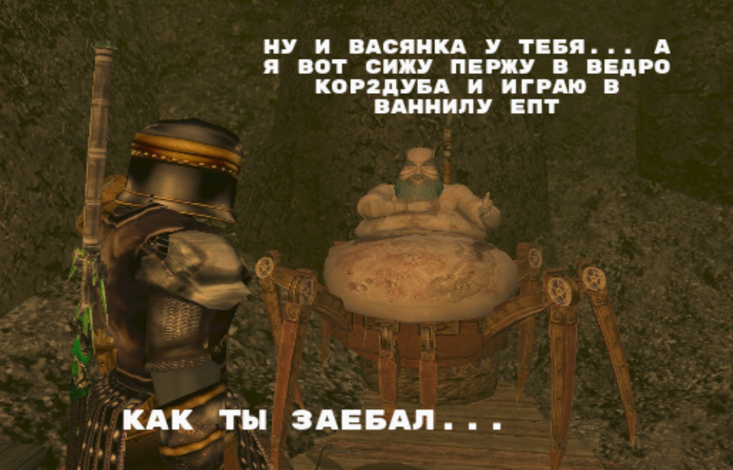 Ну и для тех кто возможно не знает в чем сложность создания руSSкой сборочки моррошинда. В том что локализация базовой игры от 1С - одна из самых удачных русских локализаций за все время. И как бы хотелось бы ее использовать в качестве базы. Но проблема в том что локализация была сделана с технической точки зрения не очень хорошо, а именно было переколбашено внутреннее устройство игры. Поэтому недостаточно провести локализацию хорошего иностранного мода (даже на графику где нету или минимум собственно текстовой базы). Нужно еще и провести адаптацию мода под 1С версию игры. А потом еще долго и мучительно отлавливать баги. И вот долгое время ребята из фуллрест репака именно этим и занимались. Это большая работа, годы работы многих людей. В идеале, если бы Главный Васян одумался и остепенился, то у нас была бы охуенная отлаженая сборочка с сохраненным pure геймплеем игры, но при этом с охуенным графоном. Но сегодня это приправлено некой долей говнеца которую не хочет убирать руководитель.