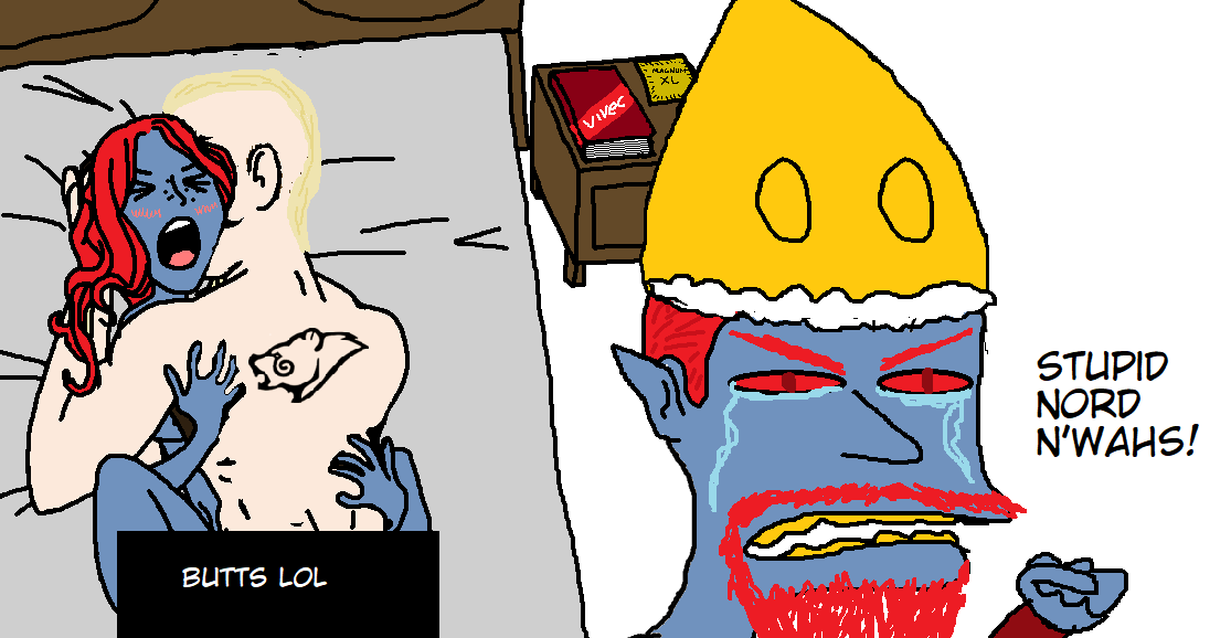 >>1992697 >>1992705 Башняскрайники пострадали потом когда никто не пришёл защищать Морровинд от даэдра и ящериков, впрочем от Дагона так то и Редоран и Хлаалу соснули, а от ящериков ещё и Дрес с Индорилом. Индорил вообще самый пососный, сначала их Неревара убили, потом Тайбер на хую вертел, потом имперцы Храм Трибунала сговнили, теперь Индорила нет, остатки Дома теперь служат отщепенцам из Холамаяна, ставшим новыми хозяевами Дома, хуже Индорила только Хлаалу.