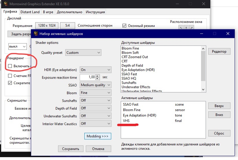 Может кто пояснить почему шейдеры не включаются? Вот я себе VHS закинул в конец списка, сохранил, а изменений нет. До этого игру переустанавливал у меня наоборот было, шейдер дрожания экрана активизировался, а убрать я его не смог никак.