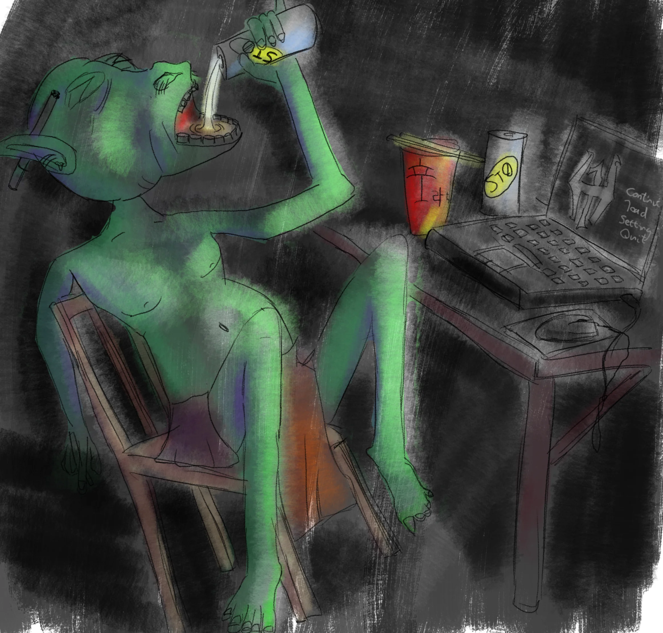 - Ра`Жид, ты ведь из имперского города? Рассскажи, правда, что там все только и делают, что бухают, дерутся, убивают друг друга, жрут скууму, трахаются по кустам, валяются в дерьме и вступают в "Мифический рассвет"? - Какой ещё "Мифический рассвет"?!