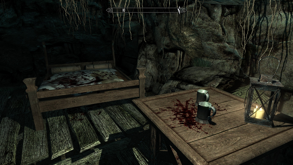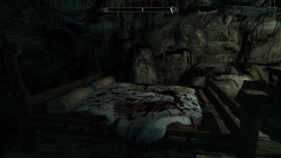 Нашел таверну Старый Хролдан. Хозяйка ни про какого Хьялти Раннебородого не слышала, но уверила, что в таверне есть комната, где останавливался лично сам Тайбер Септим. Комната не представляет из себя ничего особенного. Полежал на старой проперженной деревянной кровати, поспать не удалось, меня и Лидию разбудил крик. В таверну зашел призрак старого воина, который называл меня Хьялти, и хотел вернуть старый меч из лагеря Изгоев. В лагере нашел карту ВСЕХ лагерей Изгоев и старенький меч. Таких мечей можно найти полно в старых драугрских захоронениях. Однозначно определить, что Хьялти и Тайбер Септим это один и тот же человек, не удалось.